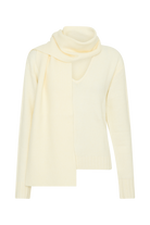 Ella V Neck Knit Jumper With Scarf - Ivory Marle