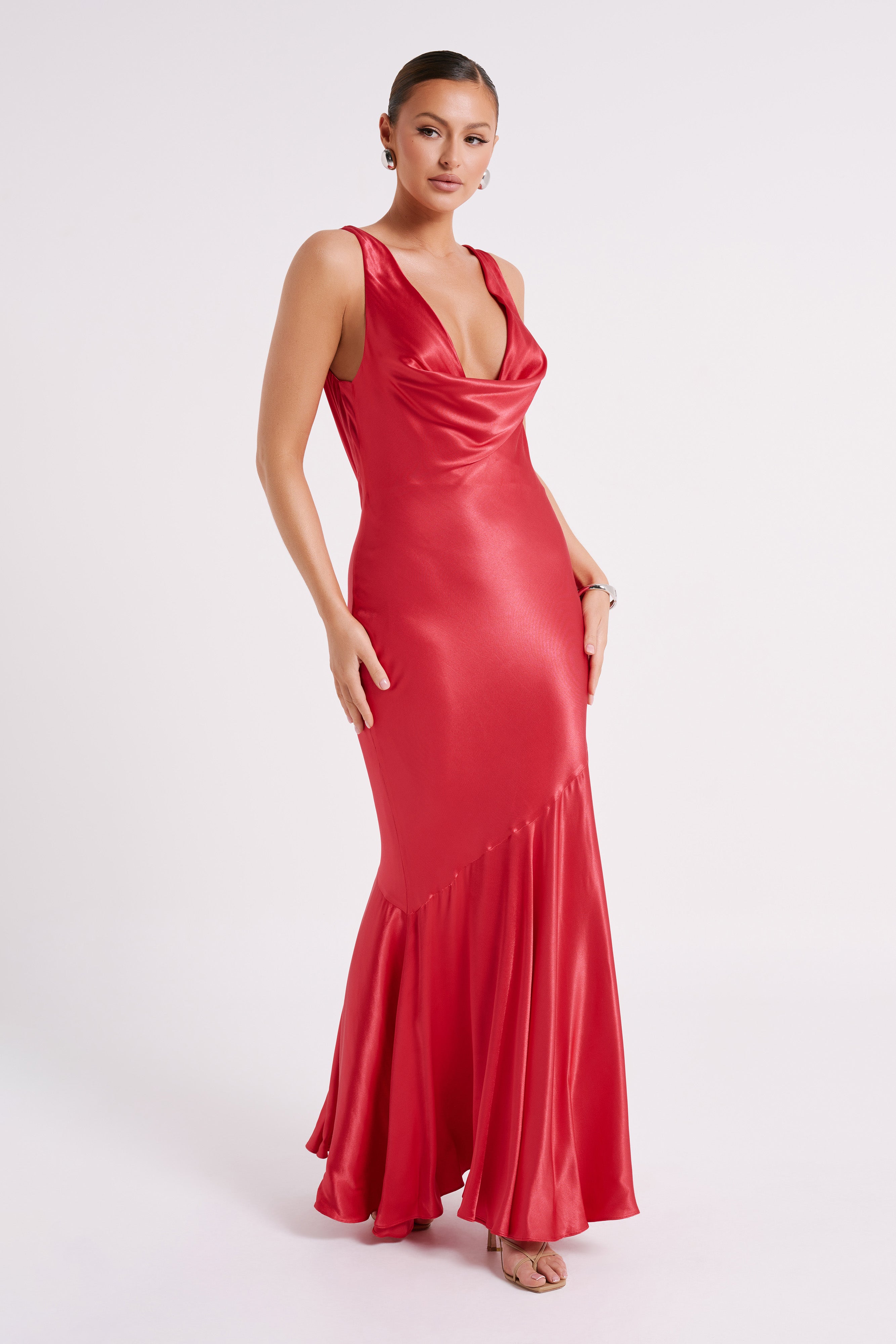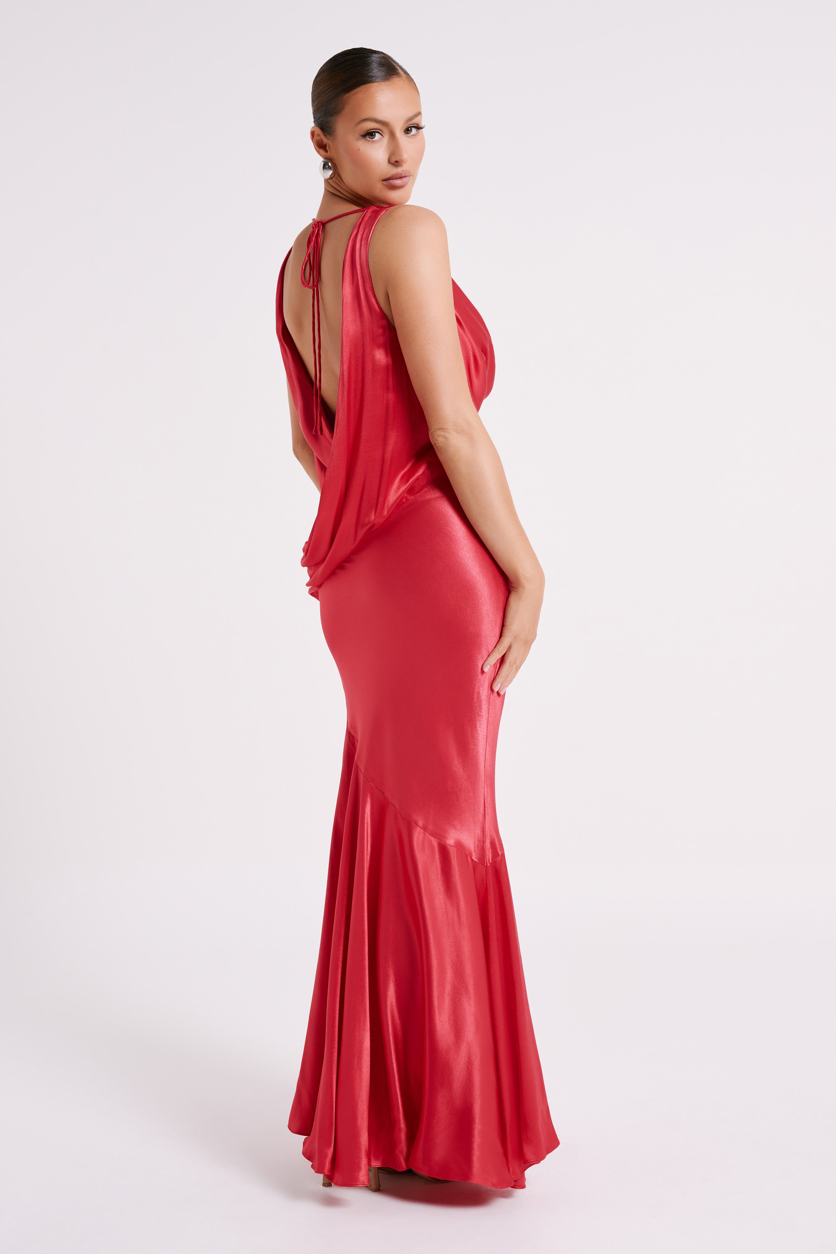 Ellison Satin Cowl Gown - Red