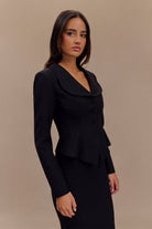 Elevate your professional wardrobe with the GRACIA Suiting Long Sleeve Blazer, a hallmark of tailored sophistication. Featuring a chic V neckline and classic collar, this blazer exudes refined elegance. The tailored fit and structured peplum detail flatter your waist, while the structured shoulders create a powerful, confident silhouette. Long sleeves add versatility for any season, and the button front closure provides a polished finish. Fully lined for comfort, the Gracia blazer radiates professionalism and style.