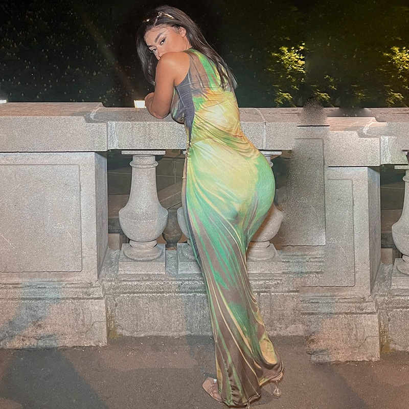 Green Abstract Midaxi Dress