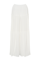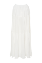 The JACINDA Cotton Maxi Skirt is a breezy blend of comfort and elegance. Designed with a flattering high-waisted silhouette and an elastic waistband for an easy fit, this skirt flows effortlessly with every step. The tiered design and delicate gathering detail add soft volume, while the crinkle cotton fabrication enhances its relaxed, airy feel. Partially lined for lightweight wear, this skirt is perfect for warm-weather days, casual outings, or effortlessly chic vacation styling.