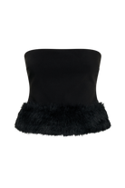 Step out in the JACKLYN Strapless Faux Fur Top, a bold fusion of luxury and style. This strapless top features a soft faux fur hem that adds a touch of drama, while its structured design offers a sleek, flattering fit. Crafted from suiting fabrication, it brings sophistication to any look, and the centre-back zip ensures a seamless finish. Fully lined for comfort, this top is perfect for making a statement—whether paired with tailored pants or your favourite skirt, it’s designed to elevate your evening ensemble with ease.