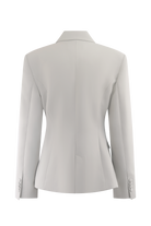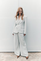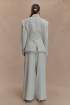 The JAMESON Cinched Suiting Blazer redefines classic tailoring with a contemporary twist. Featuring a sharp collar and lapel, this blazer stands out with its asymmetric wrap enclosure and button fastening that cinches the waist for a sculpted silhouette. Front pocket flaps add a refined touch, while the back vent ensures ease of movement. Fully lined for a polished finish, it pairs perfectly with the Jameson Pleated Wide Leg Pants for a power set that balances sharp structure with effortless flow.