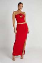 The JEANINE is a cowl back maxi skirt designed to deliver a soft feminine statement with every wear. Featuring a draped cowl back design and crafted with meticulous attention to detail, it falls beautifully and effortlessly skims your silhouette, creating a graceful and flattering look. Made from our high-quality MESHKI blend fabrication, this maxi skirt offers both comfort and style. Its flowing silhouette lends a sense of ethereal romance, while the elongated length exudes sophistication and glamour.
