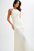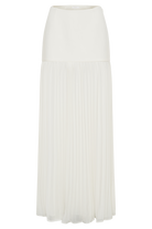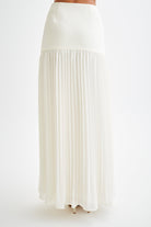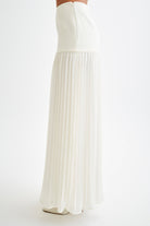 The JILLIAN Pleated Maxi Skirt is a sophisticated and elegant addition to any wardrobe. This high-waisted skirt features a fitted yoke that transitions into a beautifully pleated chiffon lower skirt, offering a graceful flow and movement. With its maxi length, it exudes timeless charm. Pair it with the Letitia Suiting Halter Top with Buckle for a chic and polished ensemble.