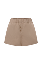 The JOHANNA Cotton Relaxed Shorts bring effortless comfort to your everyday wardrobe. Featuring a mid-rise fit and an elastic waist, these shorts provide a secure, flexible fit perfect for laid-back days. The straight leg design and mini length offer a flattering silhouette, while the non-functional button fly adds a touch of casual charm. Made from breathable cotton, these shorts are ideal for warm weather. Pair them with the Campbell Cotton Oversized Shirt for a breezy, coordinated outfit that blends relaxed comfort with effortless style.