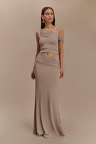 Jules Recycled Nylon And Mesh Maxi Skirt - Taupe