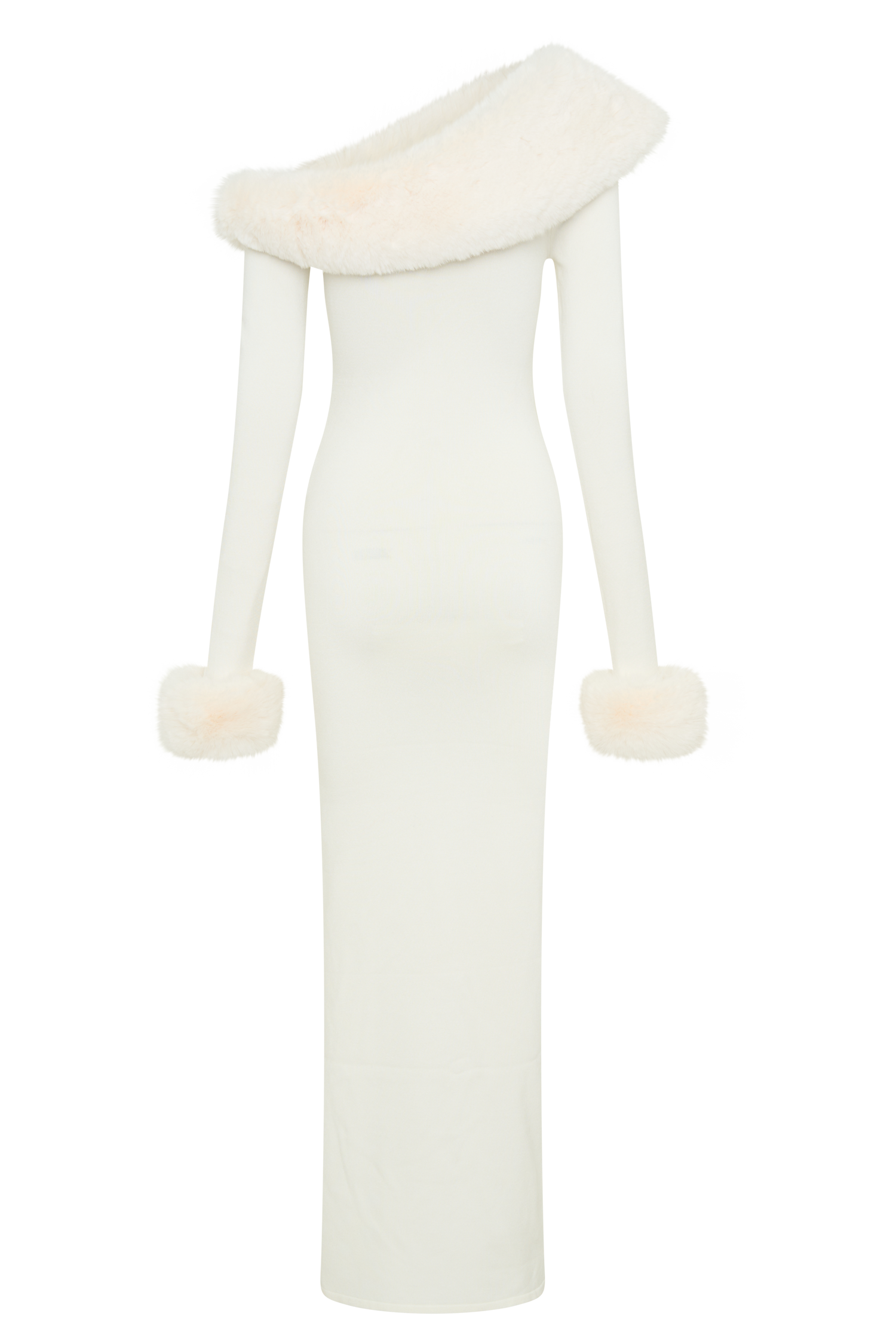 Karleigh Faux Fur Knit Maxi Dress - Ivory
