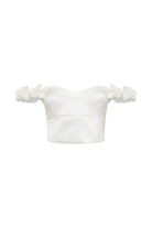 Karrie Cropped Satin Rose Bodice - White