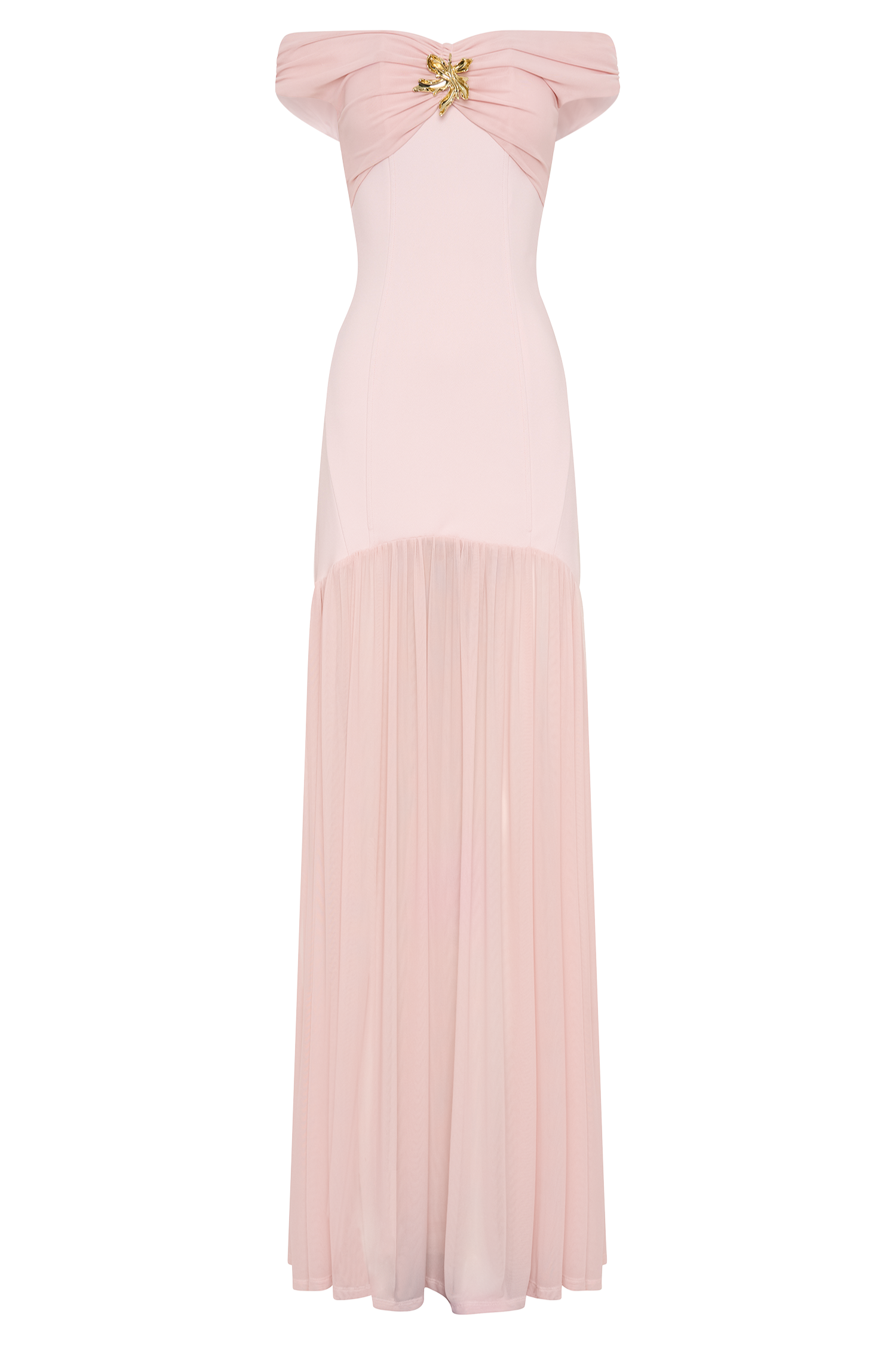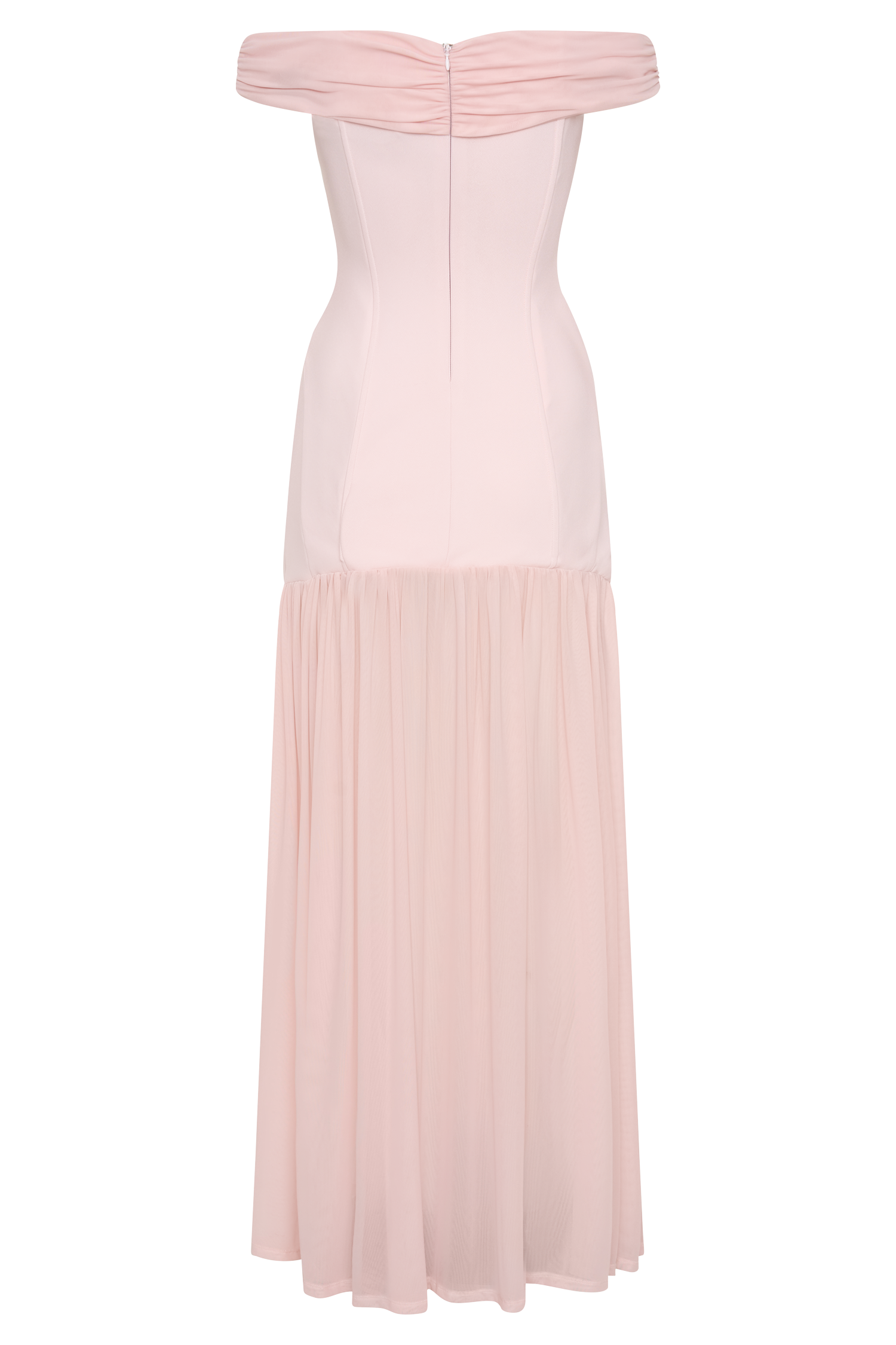 Kellie Off Shoulder Crepe Maxi Dress - Blush Pink