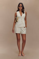 The KORRIE Suiting Short combines tailored sophistication with a relaxed fit, making it a versatile addition to your wardrobe. Designed with a structured waistband and a sleek side zip, these shorts offer a polished look with a comfortable, easy-to-wear style. Side pockets add a touch of practicality, while the full lining ensures a smooth finish. Pair it with the Katelyn Short Sleeve Suiting Top for a coordinated ensemble that’s perfect for any occasion, exuding confidence and style.