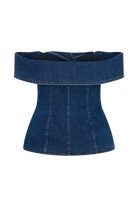 Krista Denim Off Shoulder Top - Dark Blue