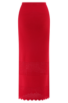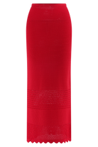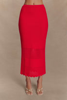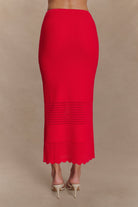 The MADELINE Scallop Knit Midi Skirt is a refined knitwear staple with a feminine touch. Designed with a high waisted fit and a straight silhouette, this maxi-length skirt features intricate pointelle knit detailing and scalloped edges at the waist and hem for added texture and charm. Unlined for a lightweight, breathable feel, it’s perfect for warm days and easy layering. Pair with the Madeline Scallop Knit Top for a coordinated look that blends softness, structure, and timeless appeal.