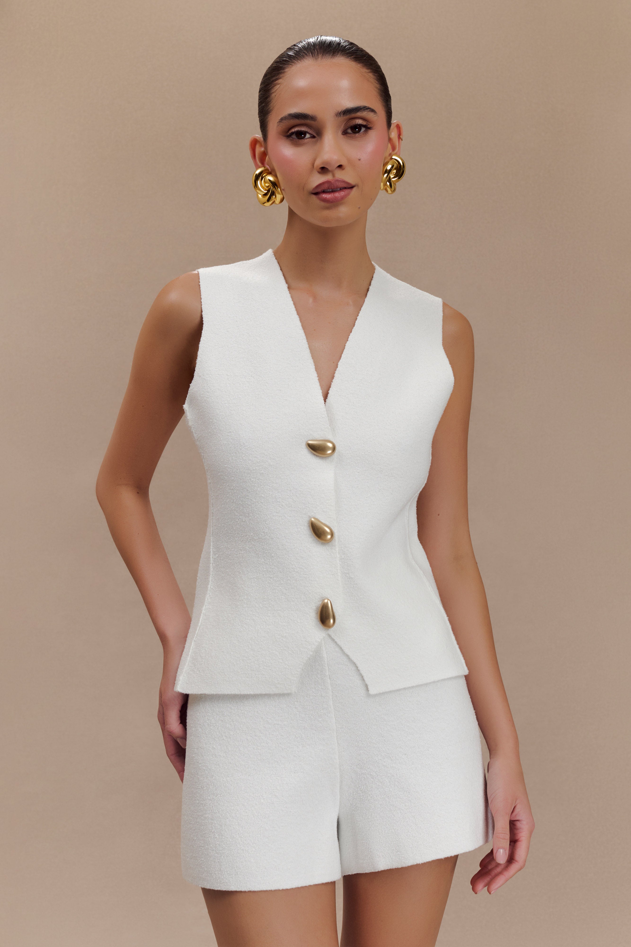 Effortless comfort meets modern style with the MALIKA Knit Tailored Shorts. Designed with an elastic waist for a flexible fit, these shorts provide all-day comfort without sacrificing style. The loose fit hem offers a relaxed silhouette, making them perfect for both lounging and outings. Crafted from soft knit fabrication, the shorts are unlined, ensuring a lightweight and breathable feel. Pair these shorts with the Malika Sleeveless Gold Button Vest for a chic, coordinated look that transitions effortlessly from day to night.