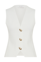 Elevate your layering game with the MALIKA Sleeveless Gold Button Vest. This stylish piece features a flattering V front neckline and a button front closure adorned with eye-catching gold decorative buttons, adding a touch of luxury to your look. The sleeveless design makes it perfect for warm weather or as a chic layering option in cooler months. Crafted from soft knit fabrication, the vest offers a comfortable fit while remaining unlined for a lightweight feel. Pair it effortlessly with the Malika Knit Tailored Shorts for a coordinated and polished ensemble.