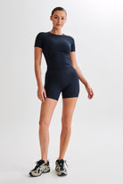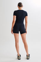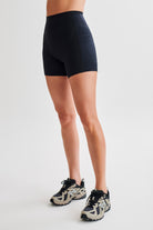 This sleek biker shorts is constructed from nylon and elastane, providing exceptional stretch and recovery properties. The high-rise fit of these shorts offers squat proof coverage, allowing you to move freely and confidently for any activity. The wide waistband ensures the shorts stay in place, while the mid-length design enables a seamless transition from gym to couch. Crafted from FLEXI butter fabrication, these shorts offer unmatched comfort, allowing for optimal flexibility and freedom of movement. It also features a side pocket and a silicone MESHKI logo for a sophisticated overall appeal. Complete the look with the matching Venus Long Sleeve Top.
