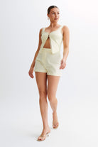 Introducing the MASSIMA Linen Shorts, a versatile and chic addition to your summer wardrobe. These shorts boast a high-waisted design, accentuating your figure while providing a flattering silhouette. With a waistband and internal fly, button, and trouser hook closure, they ensure a secure and comfortable fit. Lined for added comfort and quality, they offer a smooth and luxurious feel against the skin. Featuring a wide leg, they add a touch of sophistication to your look while allowing for ease of movement. Perfect for warm-weather styling, the Massima Linen Shorts are ideal for pairing with your favourite tops and sandals for a stylish and effortless ensemble.