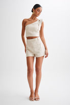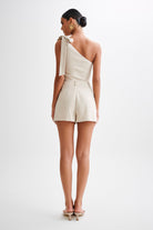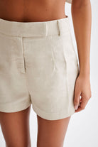 Introducing the MASSIMA Linen Shorts, a versatile and chic addition to your summer wardrobe. These shorts boast a high-waisted design, accentuating your figure while providing a flattering silhouette. With a waistband and internal fly, button, and trouser hook closure, they ensure a secure and comfortable fit. Lined for added comfort and quality, they offer a smooth and luxurious feel against the skin. Featuring a wide leg, they add a touch of sophistication to your look while allowing for ease of movement. Perfect for warm-weather styling, the Massima Linen Shorts are ideal for pairing with your favourite tops and sandals for a stylish and effortless ensemble.