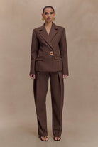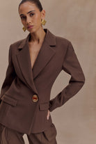 The MAX Cinched Waist Blazer is a refined take on classic tailoring, designed to sculpt and empower. Featuring a notched lapel, V-neckline, and structured shoulder pads, this blazer flatters with a cinched, fitted waist and functional button front closure. Faux front flap pockets add a clean finish, while full lining ensures all-day comfort and polish. Pair with the Penelope Pleated High Waisted Pants for a power pairing that blends timeless structure with modern sophistication.