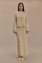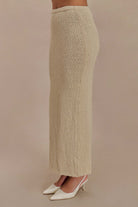 The MOIRA Boucle Maxi Skirt is a sophisticated and stylish addition to any wardrobe. Designed with a mid-rise and an elastic waist, this skirt offers a comfortable and flattering fit. The straight silhouette enhances its classic appeal, while the boucle knit fabric adds a touch of texture and elegance. Unlined for a lightweight feel, this skirt is perfect for both casual and dressy occasions. Its timeless design makes it a versatile piece that can be easily dressed up or down, ensuring it becomes a staple in your wardrobe. Pair with the Azalea Sleeveless Knit Top to complete the look.