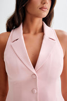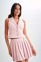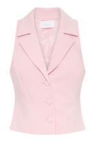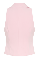 This is a sleeveless, single-breasted suiting vest with a deep V-neckline and functional front buttons. The lapel collar and longline bodice add structure to the soft, comfortable fabrication, seamlessly blending form and function. The silhouette is a suiting classic–clean lines, smooth edges, and subtle details. Minimalist and modern, MURA is a beautiful, versatile addition to your wardrobe for wear season after season. Complete the look with a structured, textured skirt like Mura Pleated Mini Skirt.