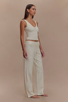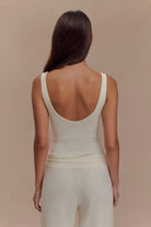 The NATALYA Ribbed Knit Cami Top brings effortless elegance to your wardrobe with its flattering design and cozy feel. Featuring a sophisticated V-front neckline and a scoop back, this top offers a sleek yet feminine silhouette. Underbust panels enhance the fit and add subtle shaping, while the longline cut provides a modern touch and added coverage. Crafted from soft ribbed knit fabric, it’s both comfortable and stylish for any occasion. Complete the look by pairing it with the Natalya Knit Wide Leg Pants.