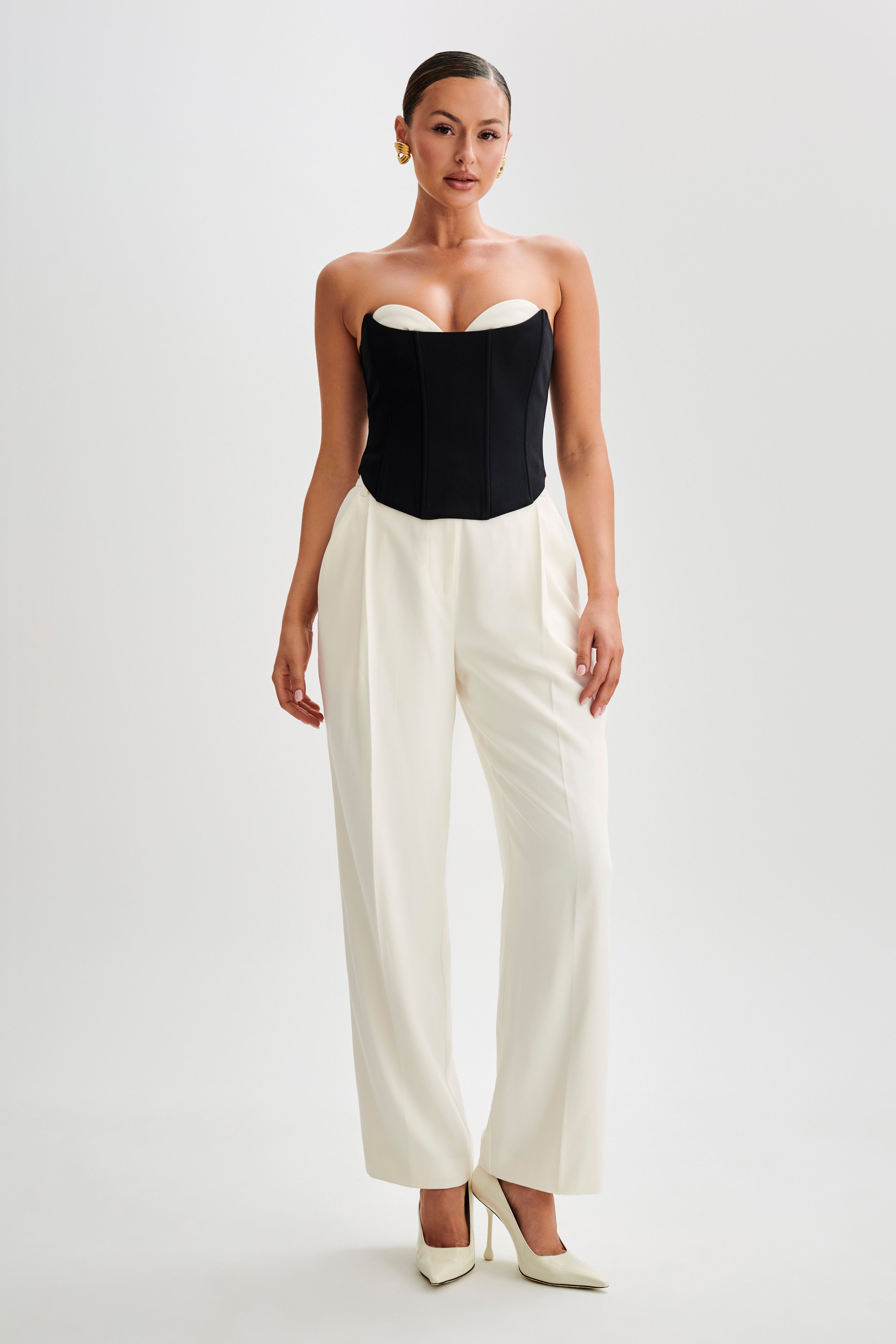 Oceane Contrast Suiting Strapless Corset - Black