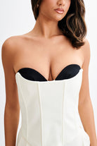 Introducing the OCEANE Contrast Suiting Strapless Corset, a stunning blend of classic elegance and modern sophistication. Featuring a corseted bodice with internal boning, this piece accentuates your figure with flattering precision. The princess neckline adds a touch of refinement, while the contrast bust cup detailing enhances its visual appeal. Designed with a rounded hem shape and a centre back zipper for ease of wear, this corset is both stylish and practical. Whether paired with trousers for a sleek office look or a skirt for a night out, the Oceane Contrast Suiting Strapless Corset promises to elevate your ensemble with its timeless charm and undeniable allure.