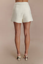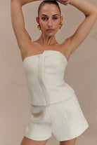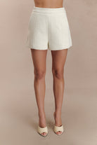 Elevate your summer wardrobe with the PARKER Boucle Shorts, where comfort meets chic sophistication. These high-waisted shorts are crafted from soft boucle fabrication, giving them a textured and stylish appeal. The centre front zip closure ensures a secure fit, while the side pockets add practicality without compromising on style. Perfect for dressing up with the Parker Boucle Strapless Asymmetric Top or keeping it casual with a simple tee, these shorts are a versatile addition that exudes effortless elegance.
