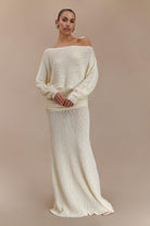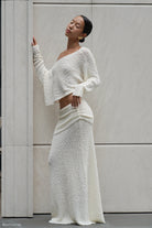 Petra Ruched Knit Maxi Skirt - Ivory