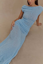Petra Ruched Knit Maxi Skirt - Light Blue
