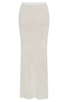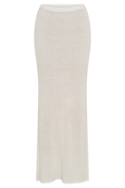 Introducing the PHOEBE Knit Maxi Skirt, a stunning piece that effortlessly combines comfort and sophistication. This high-waisted skirt features a flattering fishtail hem shape that gracefully drapes around your silhouette, creating an elegant, flowing effect. The elastic waist ensures a comfortable and secure fit, while the sheer knit fabrication adds a touch of allure. Lined with soft mesh for added coverage, this skirt is perfect for both casual outings and dressier occasions. Pair it with the Phoebe Strapless Tie Knit Top for a chic, coordinated look that showcases your style.
