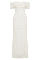 Priyanka Daisy Beaded Off Shoulder Wedding Gown - White