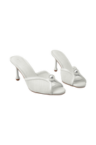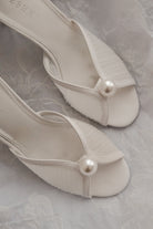 The REENA Pearl Mesh Mule is a fusion of timeless elegance and modern design. Featuring an open-toe silhouette with soft rounded front shaping, this mule is effortlessly chic. A statement front pearl adds a touch of luxury, while pleated mesh detailing and satin binding create a refined, textural contrast. Designed for both comfort and sophistication, the Reena mule is the perfect finishing touch for bridal moments, evening events, or any occasion that calls for understated glamour.