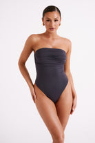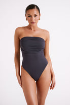 Romina Recycled Nylon Ruched Bodysuit - Charcoal
