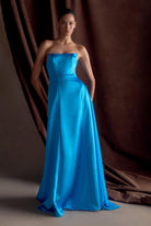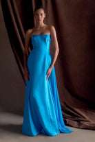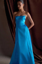 Rosella Satin Strapless Maxi Dress - Cyan Blue