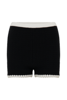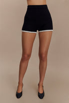 The SAFFRON Contrast Knit Shorts offer a stylish and comfortable option for your casual wardrobe, combining elegance with functionality. Featuring an elastic waist and a ribbed contrast waistband, these shorts ensure a secure and flattering fit. The thick textured knit fabrication provides both structure and comfort, while the functional front pockets add practicality. Distinctive contrast scalloping at the hem and pockets, along with gold buttons, adds a touch of sophistication to the design. With their mini length and unlined knit construction, these shorts pair seamlessly with the Saffron Contrast Knit Top, creating a chic, coordinated look perfect for any relaxed outing or casual event.