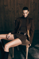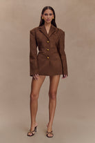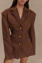 Sally Faux Suede Cinched Blazer - Milk Chocolate