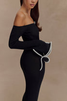 Sandrine Off Shoulder Knit Maxi Dress - Black/White