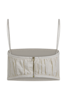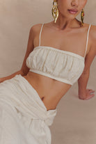 The SCOTTIE Shirred Linen Bandeau is a fresh, feminine staple designed for sun-filled days. Featuring a straight neckline, gathered bodice, and thin shoulder straps, this bodycon top is fully lined and offers a snug fit without padding. A turn-back loop at the back neckline allows the straps to be tailored for a personalised fit, while an exposed centre back zipper adds a modern edge. Pair it with the matching Scottie Gathered Linen Knot Midi Skirt or your favourite denim for an easy, elevated look.