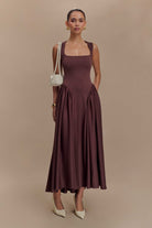 Sharon Scuba Jersey Midi Dress - Cacao Brown