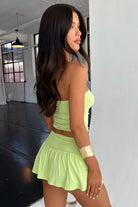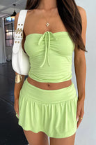Discover the Sophie Soleil Set, your go-to outfit for every sunny moment—from spontaneous brunches to carefree city strolls with friends. This stylish two-piece set combines a strapless top with a charming bow and a flattering above-the-knee skirt, offering a complete and effortless look. The soft, lightly stretchy fabric moves gracefully with your body, while the high-waisted fit and eye-catching details make you feel as radiant as you look.