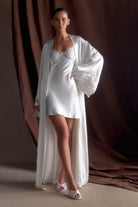 Sullivan Satin Bridal Robe With Lace - Ivory