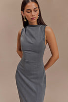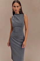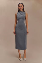 Taylor Draped Crepe Midi Dress - Charcoal Marle