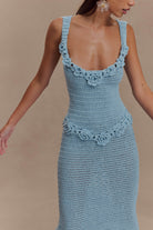 Teagan Floral Hand Crochet Midi Dress - Blue