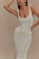 Teagan Floral Hand Crochet Midi Dress - Ivory