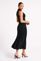 This is a full-length maxi skirt with an invisible side zipper and waist-to-hem pleats. Fresh and versatile, its polyester-and-elastane fabrication allows it to look loose and flowy without losing its structure. Small details like the fitted waist and pleated hem for visual appeal but at a timeless length.