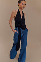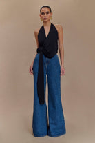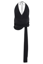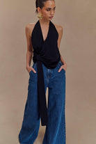 The TYLA Draped Slinky Halter Top features a sophisticated halter neckline and a flattering V front. Its draped bodice adds an elegant touch, while the tie detail at the hip provides a chic accent. Crafted from a stretch fabric, this top ensures a comfortable fit. Perfect for pairing with tailored trousers for a stylish and elegant evening look.