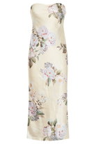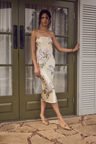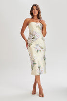 Tyler Strapless Satin Midi Dress - Lemon Floral Print