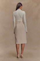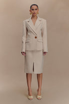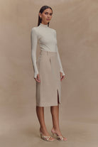 Vera Suiting Split Front Midi Skirt - Ivory Stone